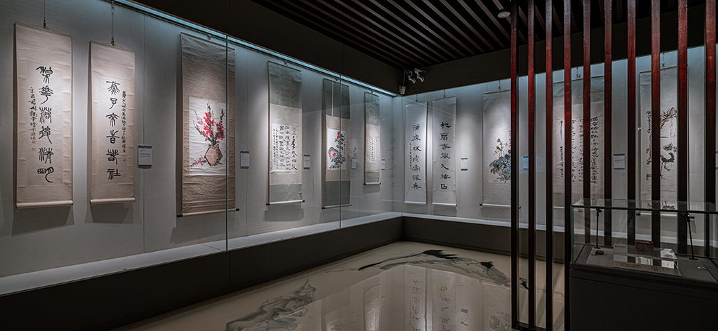 君匋藝術院是一座多功能的藝術博物館。整個建筑由兩個展覽大廳、講堂、研究室、資料室。珍品庫以及配套的客房、餐廳組成。可舉辦各種美術、書法、攝影等展覽,接待國內外藝術家。君匋藝術院是及創作、研究、講學為一體,還可在此舉辦藝術講座、培訓班和函授學校。院內綠草茵茵,花香四季,碧水環繞,是藝術活動的理想場所。院址占地面積為3215平方米,建筑面積1432平方米。建筑布局合理,造型新穎,明快,有較強的現代氣息,又有江南水鄉的風格。外墻飾面全部采用白色墻面磚,線條挺直,輪廓簡潔。展廳、餐廳、客房采用曲廊連接。庭院中布置有草坪、水池、小曲橋、院名碑以及錢君匋銅像,形成了一個豐富多彩的藝術活動場所和安靜舒適的創作、居住環境。 君匋藝術院展廳陳列的主要內容是書畫印章。二層展廳設有展櫥及展柜,用于陳列錢君匋先生的書畫印章,還設有錢君匋藝術生涯陳列室。底層展廳用大展板的形式將六開間的展覽大廳分隔成兩間用于陳列巨幅書畫,兩個展廳均鋪設復合地板,裝修新穎,并裝置了微波動態防盜報警系統,以保證日常需求。
