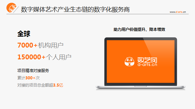 數(shù)藝網(wǎng)目前作為國內(nèi)外較為知名的數(shù)字媒體藝術(shù)產(chǎn)業(yè)生態(tài)鏈的數(shù)字化服務(wù)商,自2017年正式步入運(yùn)營以來,積累了國內(nèi)外超過7000家數(shù)字媒體藝術(shù)產(chǎn)業(yè)鏈上下游機(jī)構(gòu)用戶,為超過15萬+從業(yè)者提供了信息內(nèi)容服務(wù)。上一年度,數(shù)藝網(wǎng)提供的項(xiàng)目精準(zhǔn)對接服務(wù)累計(jì)超300次,對接的項(xiàng)目總金額超3.5億元。