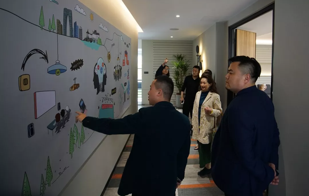 公司聯席總裁高珉、策劃設計研究院院長劉軍、總經辦副主任李遙等高管接待了Julia CHIU教授一行。Julia CHIU教授一行在金浦九號參觀了蘇州金螳螂文化發展股份有限公司新辦公樓、創新文化展,并與設計師們舉行交流座談會。