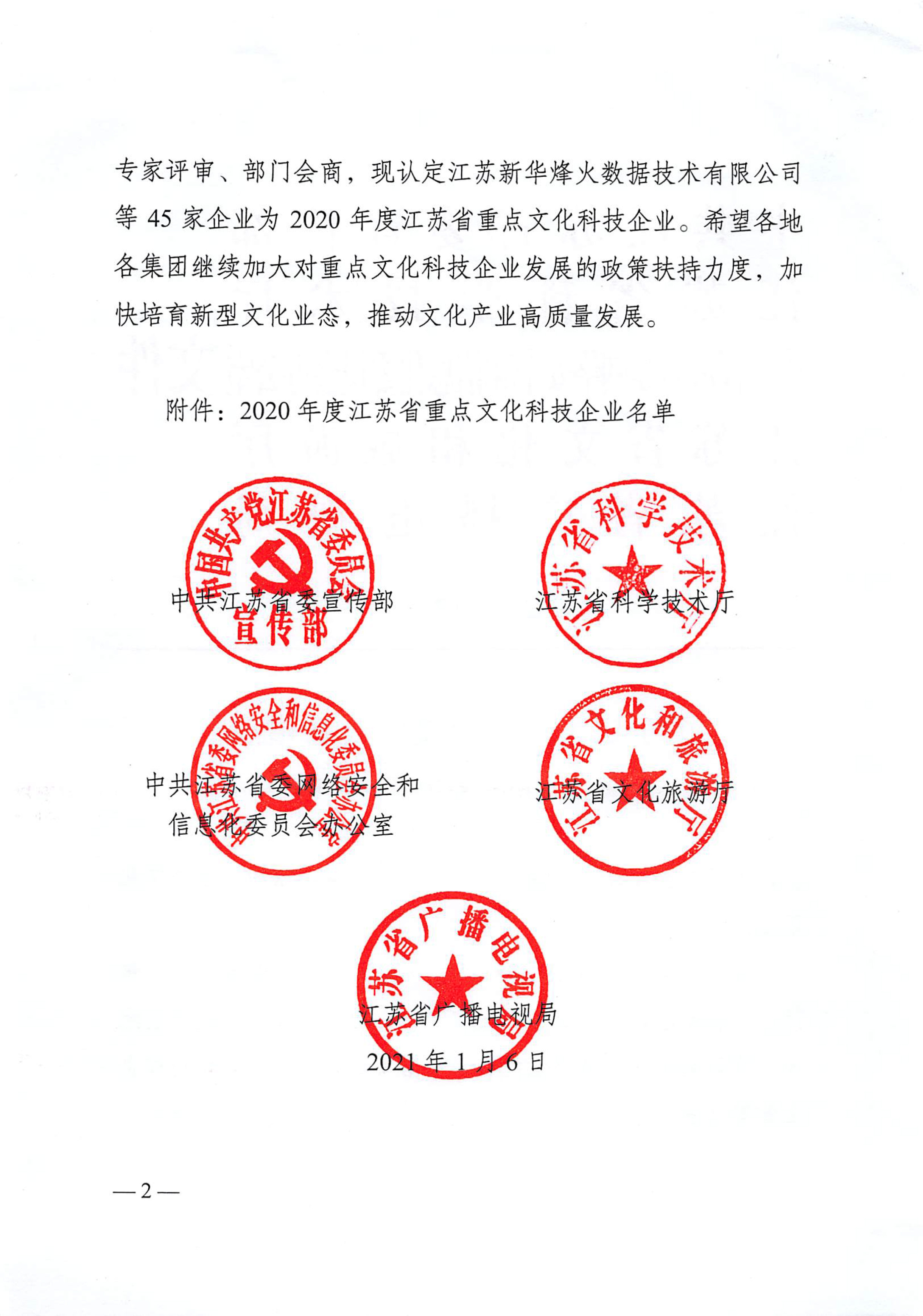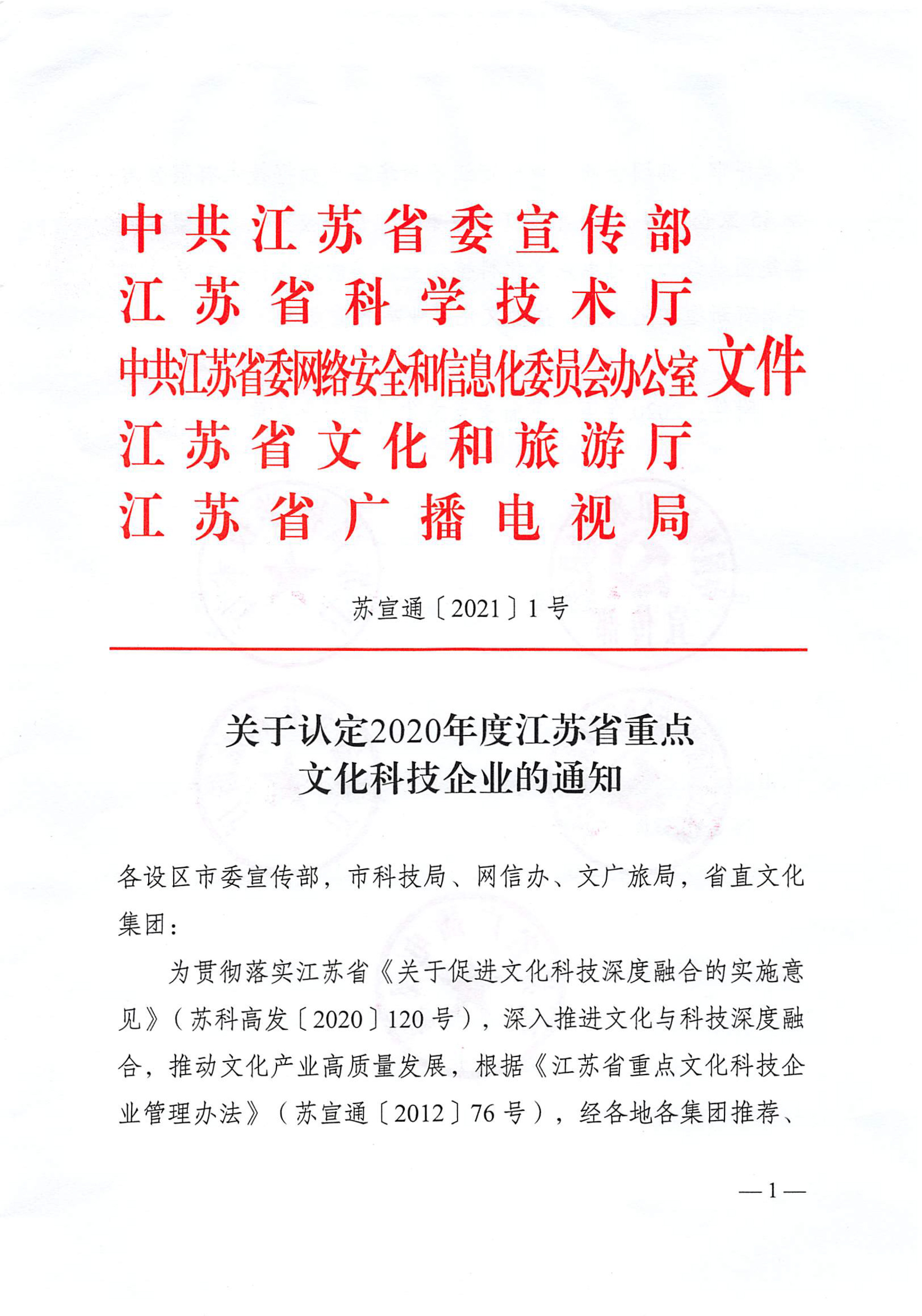 中共江蘇省委宣傳部、江蘇省科學(xué)技術(shù)廳、中共江蘇省委網(wǎng)絡(luò)安全和信息化委員會(huì)辦公室、江蘇省文化和旅游廳、江蘇省廣播電視局聯(lián)合發(fā)布了“關(guān)于認(rèn)定2020年度江蘇省重點(diǎn)文化科技企業(yè)的通知”,金螳螂文化公司榜上有名 。