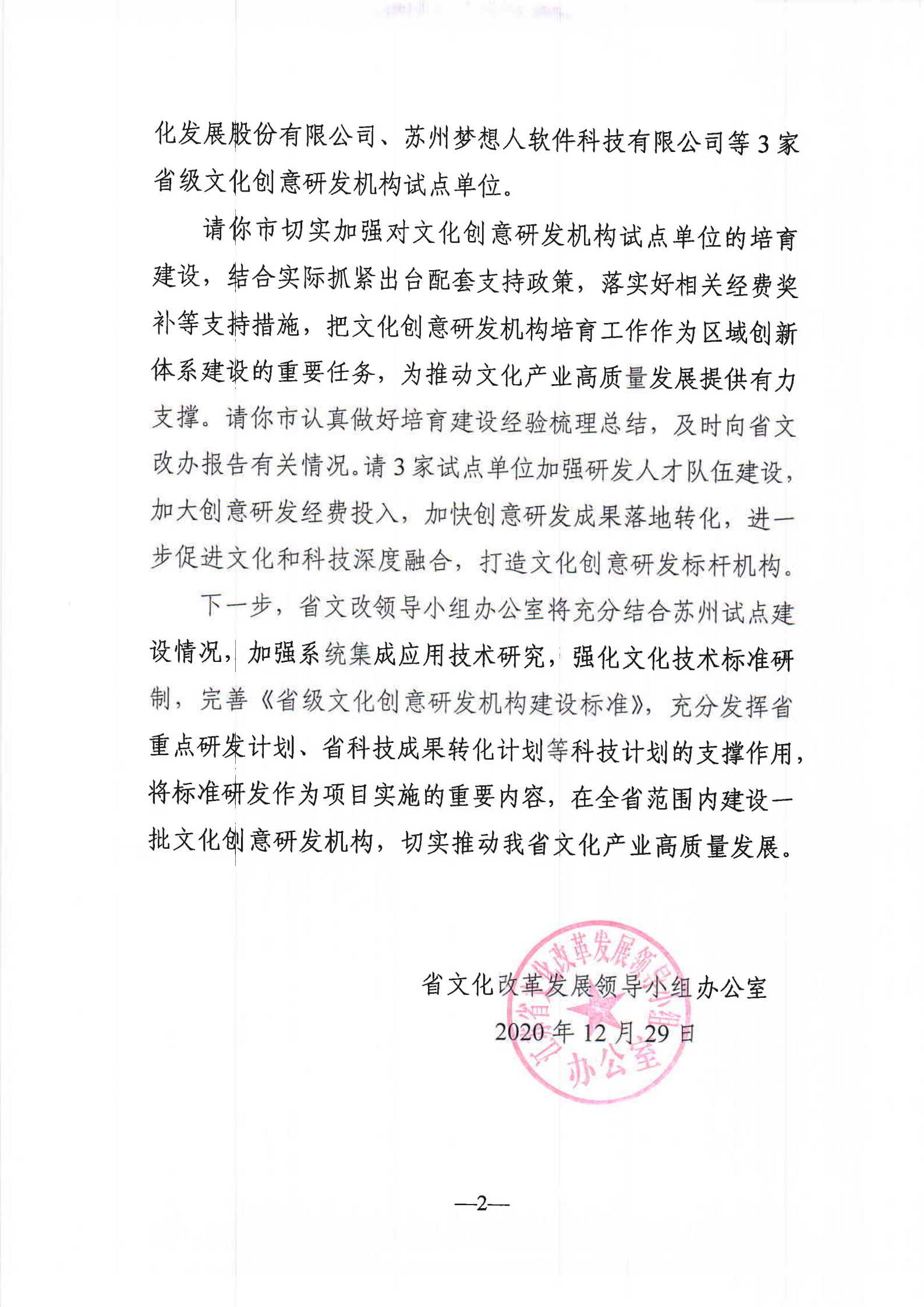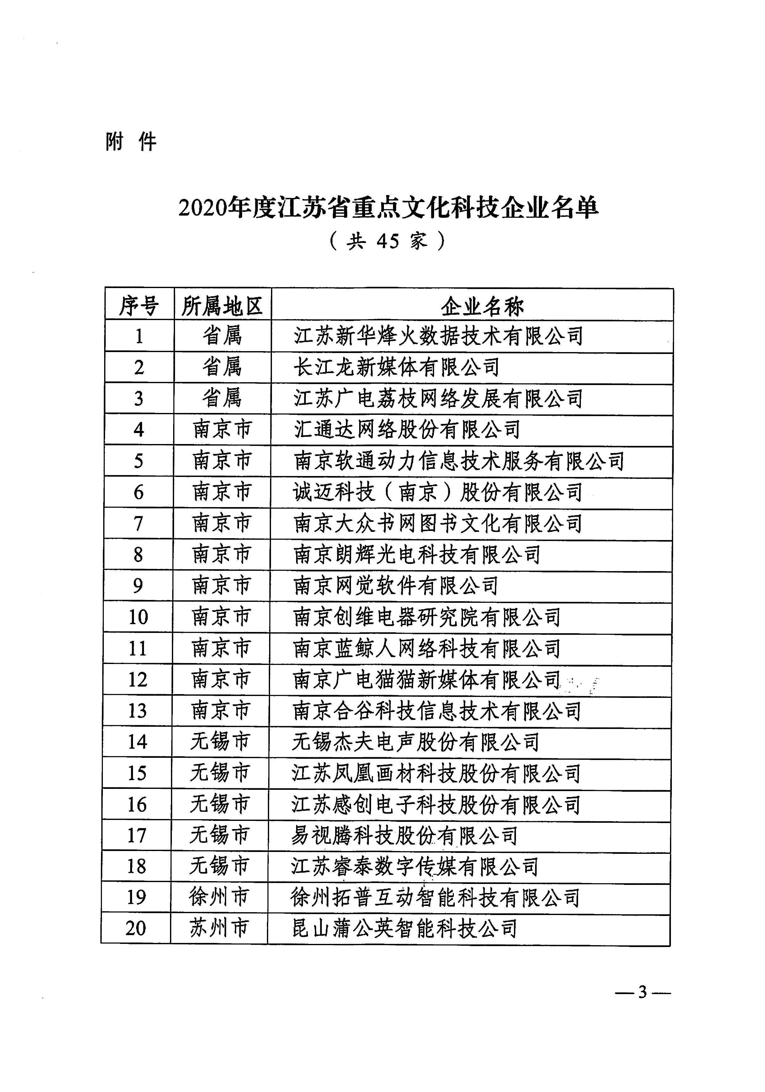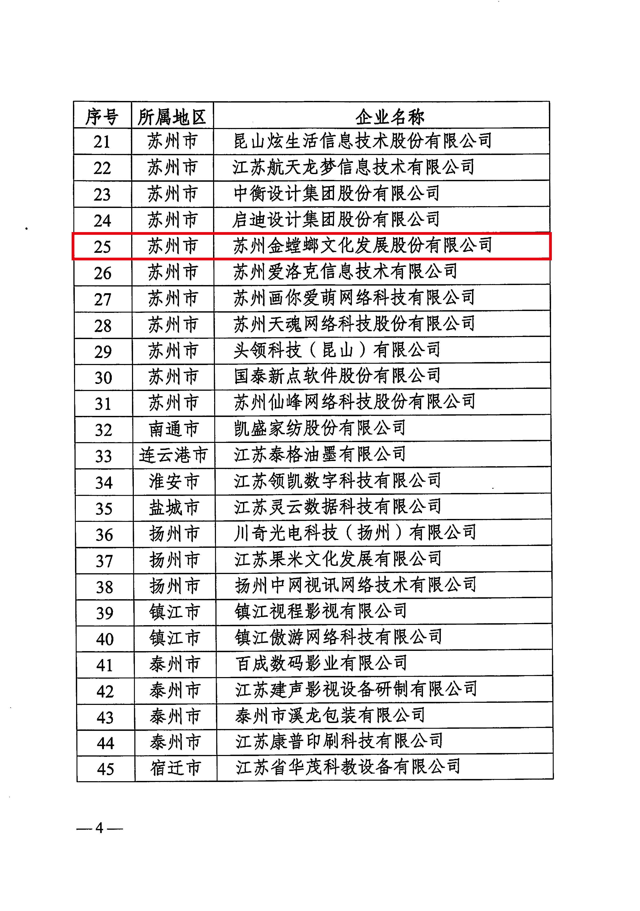 為貫徹落實(shí)江蘇省《關(guān)于促進(jìn)文化科技深度融合的實(shí)施意見(jiàn)》,深入推進(jìn)文化與科技深度融合,推動(dòng)文化產(chǎn)業(yè)高質(zhì)量發(fā)展,根據(jù)《江蘇省重點(diǎn)文化科技企業(yè)管理辦法》,經(jīng)各地各集團(tuán)推薦、專(zhuān)家評(píng)審、部門(mén)會(huì)商,現(xiàn)認(rèn)定蘇州金螳螂文化發(fā)展股份有限公司等45家企業(yè)為2020年度江蘇省重點(diǎn)文化科技企業(yè)。