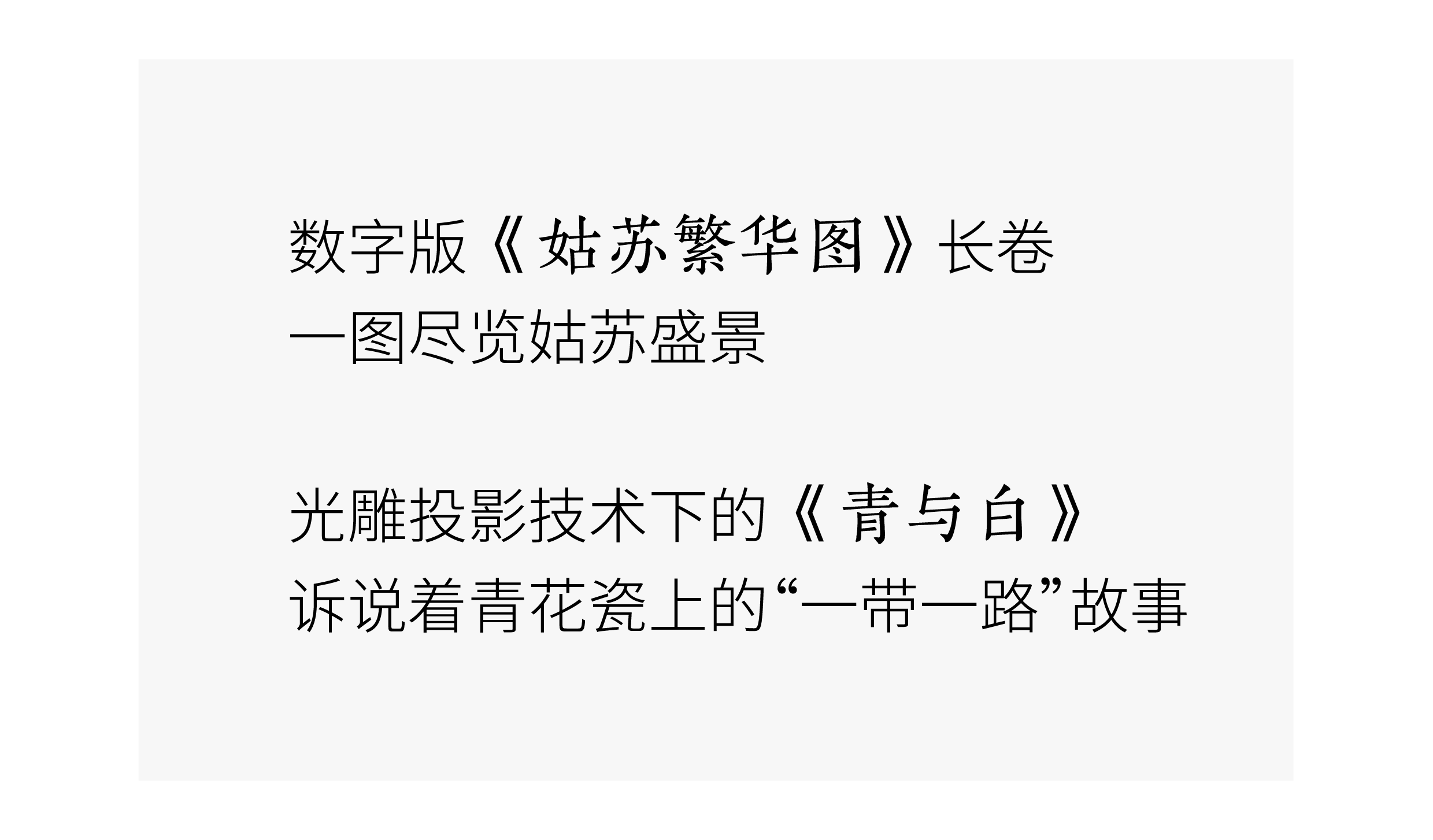蘇州金螳螂文化發展股份有限公司受邀參展,并在明·美術館二樓展廳設置展位,以《姑蘇繁華圖》動態長卷、《青與白》3Dmapping、《山水華滋·吳地風物》霍格沃茲互動投影詮釋“數字+文旅”。