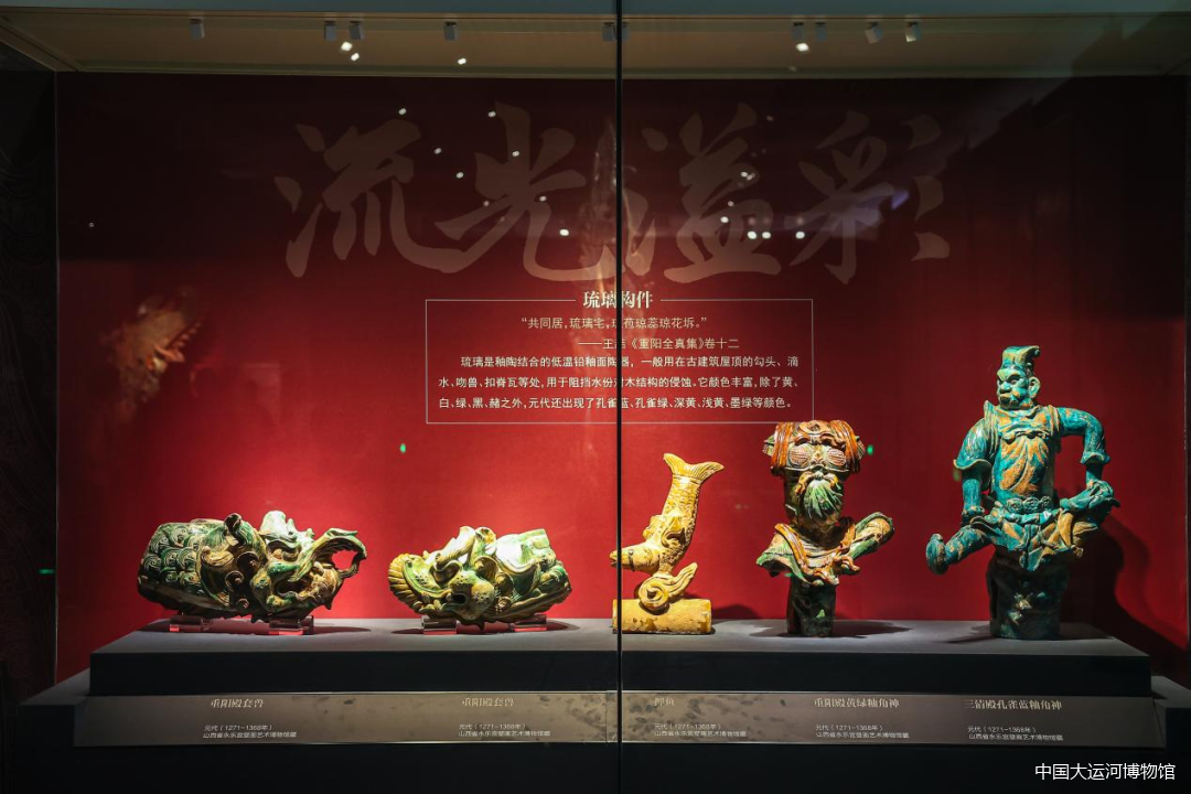 深釉紅、綠琉璃色、黛藍