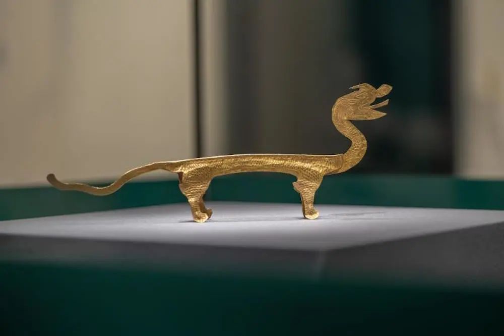 在這一單元中,可以看到多家博物館的鎮館之寶,如南京博物院的金蟬玉葉飾件;杭州市蕭山區博物館的顯德五年舍利銅塔;蘇州博物館金龍;杭州市臨安區博物館的越窯青釉瓷杯托;杭州博物館藏“行春橋魏三郎匠刻”款雙夾層鎏金牡丹紋銀盞等眾多精美古代藝術品。