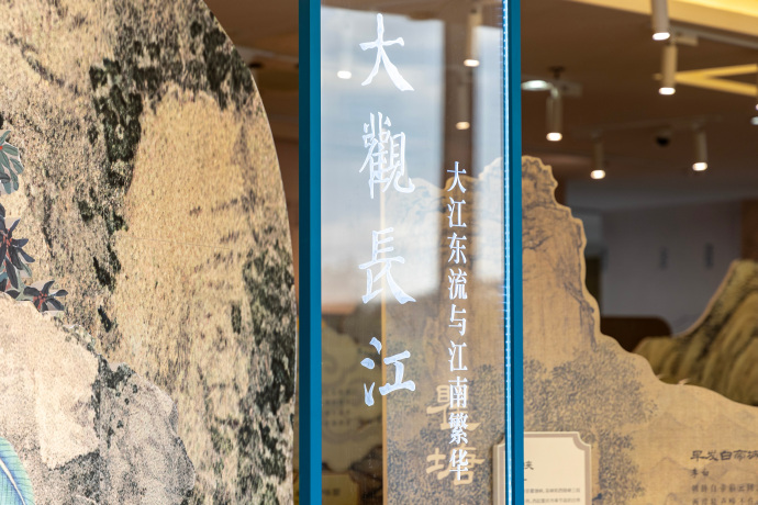 該展覽以《長江大觀全圖》、長江流域線路圖和紙質裝置三位一體的展示方式,設置“起·溯源”“承·煙火”“轉·激蕩”“合·共生”四大篇章。