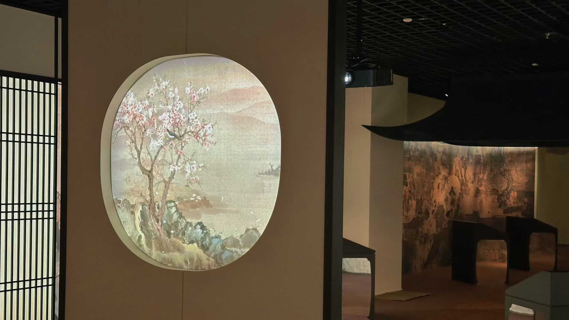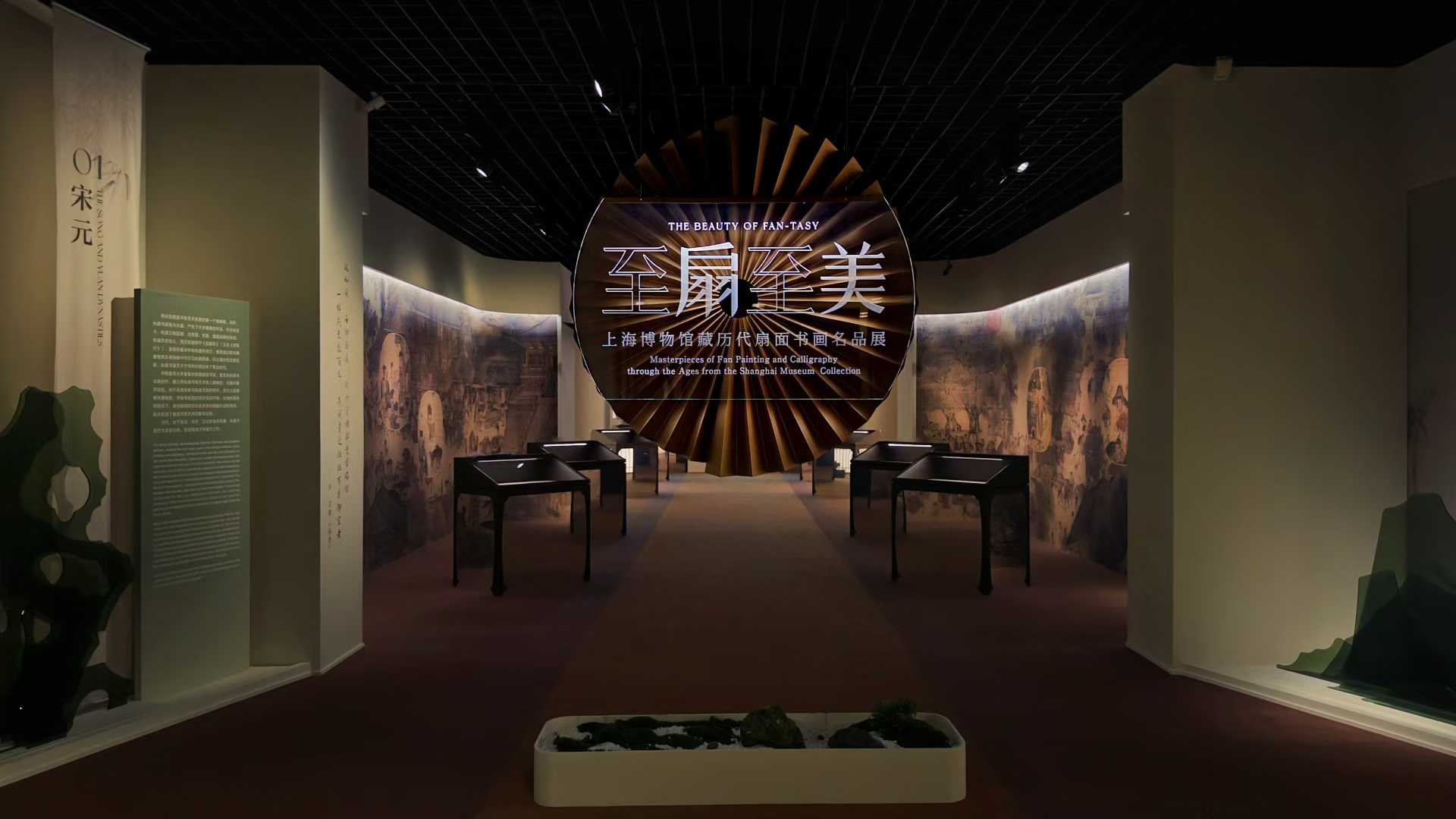 主線展示聚焦扇面書畫的發展脈絡,空間設計融入宋式建筑、明清園林及文人書齋的美學理念,通過由大到小、由外及內的空間序列,形成連貫的觀展流線。